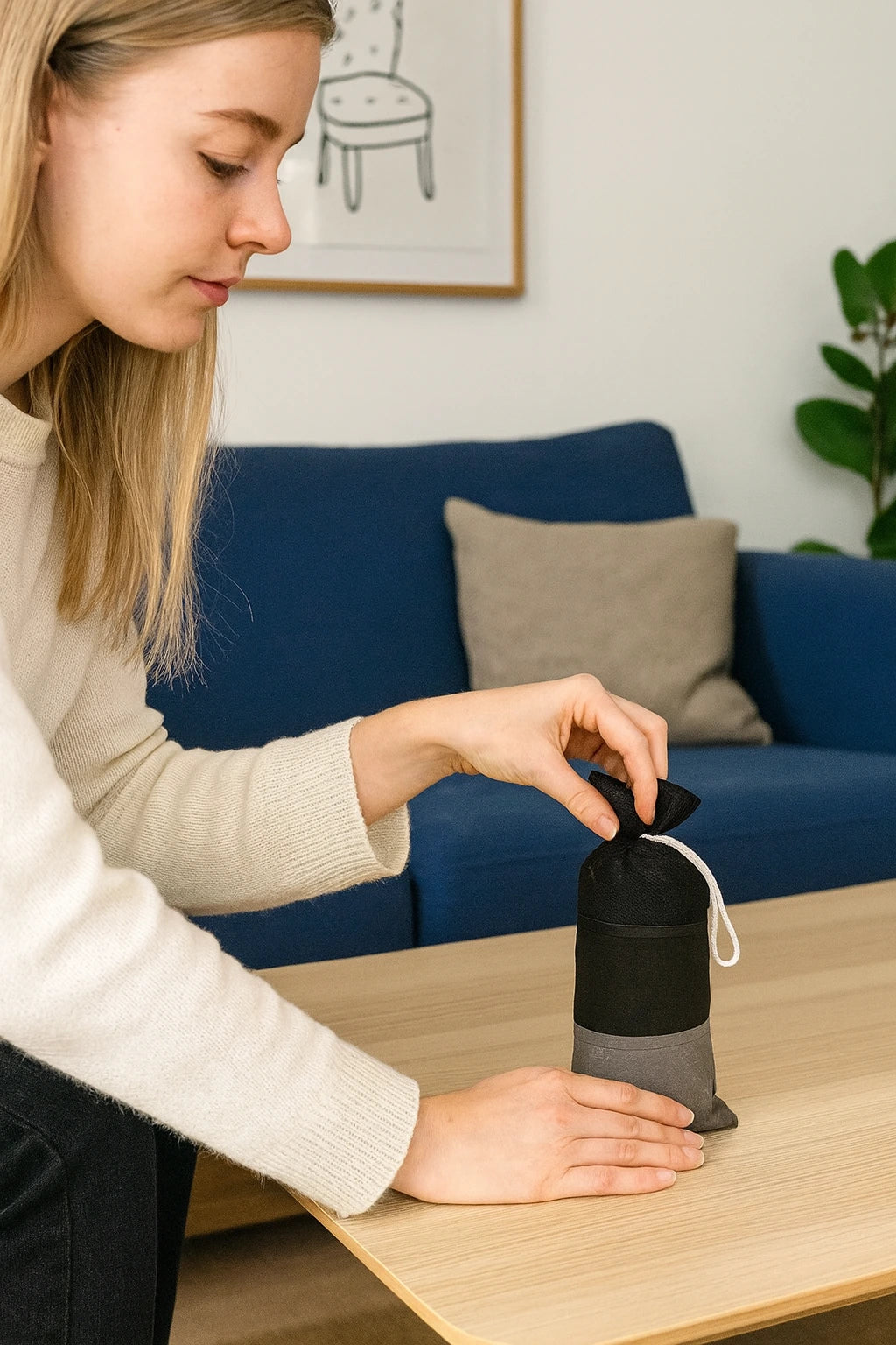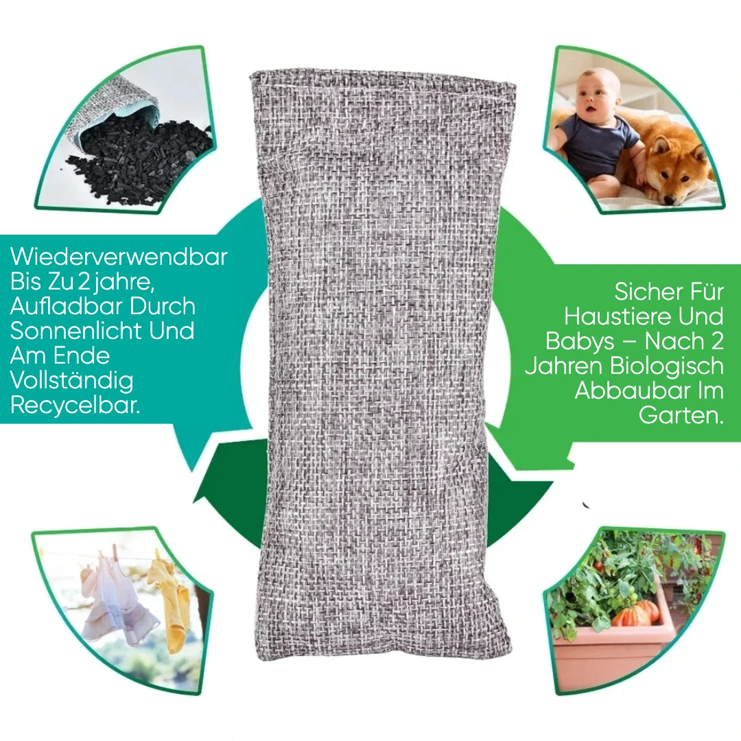 Unser Aktivkohle-Beutel ist deine Geheimwaffe gegen schlechte Gerüche – egal ob im Wohnzimmer, Auto, Kleiderschrank oder Badezimmer.